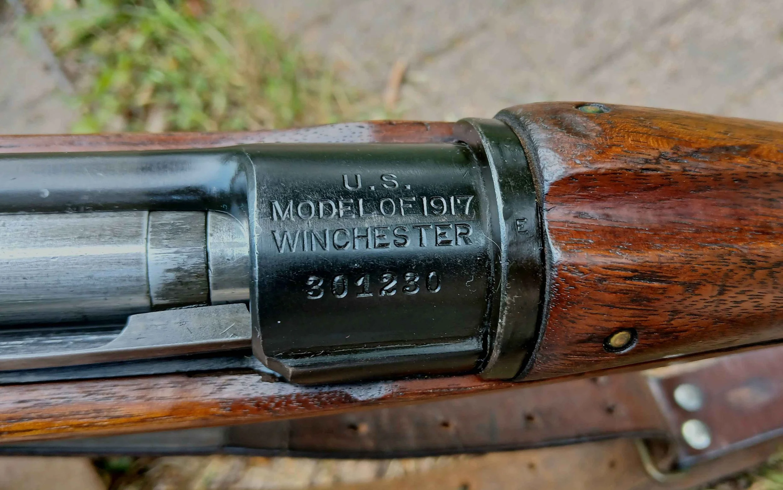 The receiver of the M1917 bears the model designation, property mark, manufacturer name and serial number