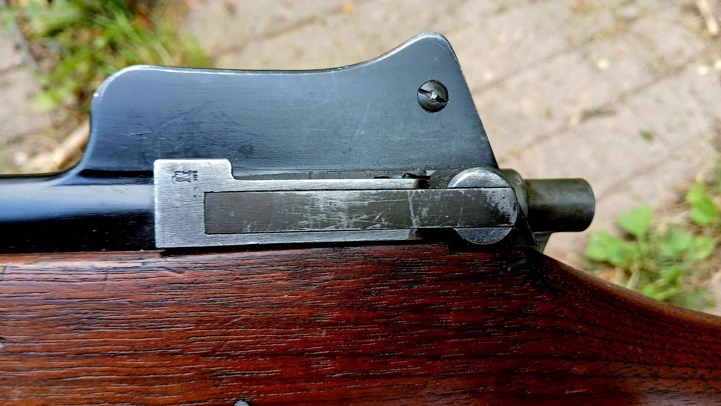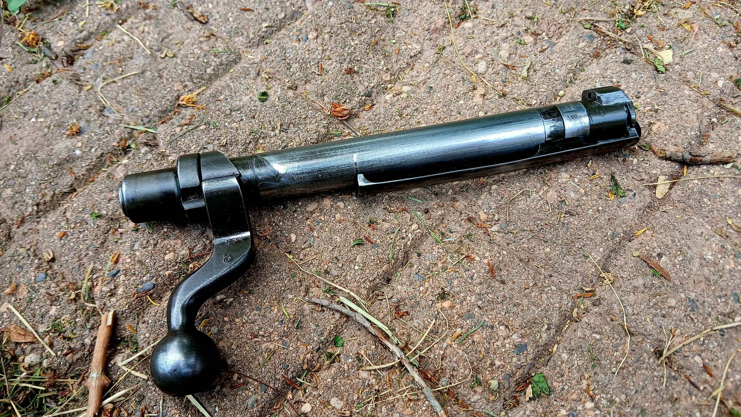 The M1917 is a cock on close bolt action rifle that is at least in part inspired by the Mauser system, mixed with Enfield elements. The bolt has dual opposed front lugs and a Mauser type long claw extractor. Its distinctive “dog leg” bolt handle is designed to deposite the shooter’s hand as close to the trigger as possible when cycling the action, facilitiating rapid fire in keeping with British doctrine.